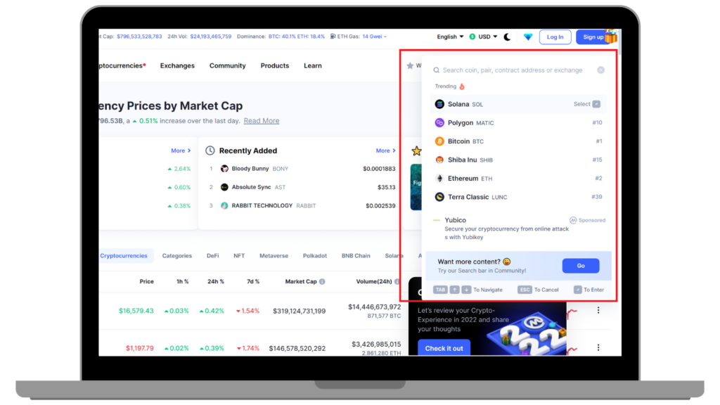 We will trend your token on CoinMarketCap's search bar, where you will gain maximum exposure to investors actively searching projects for 24 hours.